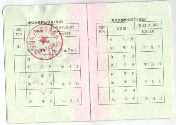 質監局特種作業證-樣版