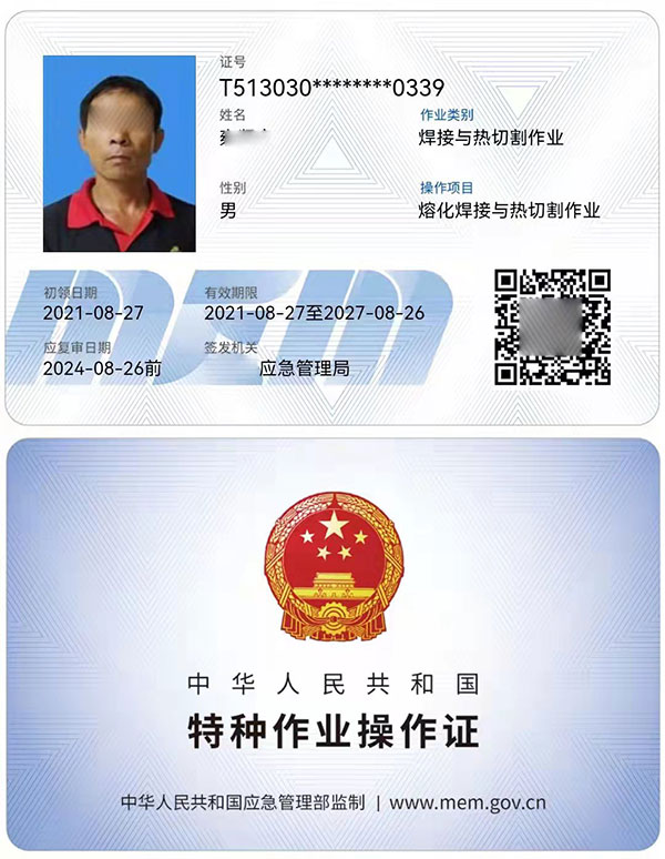 全國熔化焊接與熱切割作業人員的安全技術培訓、考核、發證、復審工作等工作,由四川省應急管理廳統一監管。熔化焊接與熱切割作業操作證有效期是6年,每3年復審一次,滿6年需要重新考核換證,證書是全國通用,全國通審。