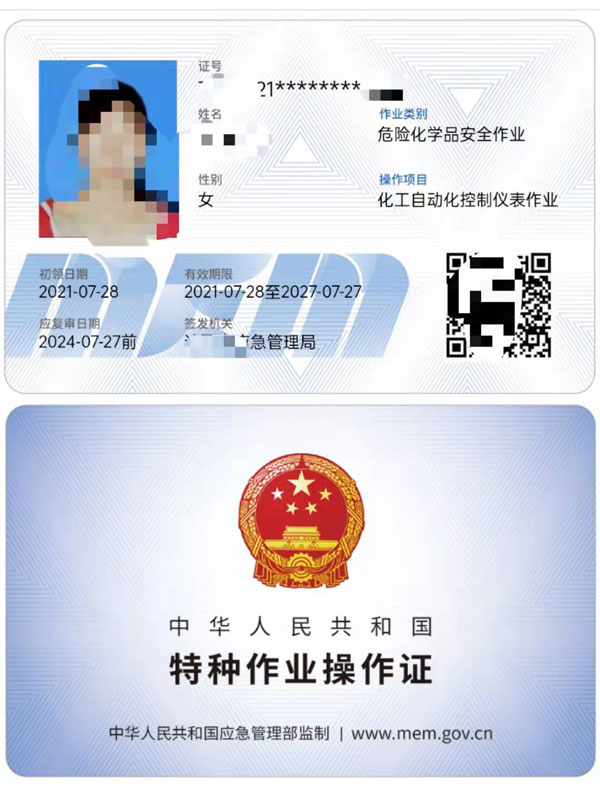化工自動(dòng)化控制儀表作業(yè)操作證;