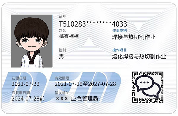 焊工特種作業操作證,全國通用,聯網可查,是焊工從業人員必備的有效證件,證件有效期是6年,3年到期需要年審,6年滿了則需要換證,不管是復審還是換證,都建議大家提前2-3個月申請,以免過期作廢。