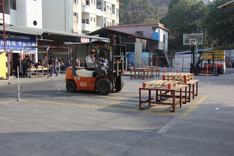 3、時間要求:4分鐘內完成。計時從叉車起步行駛開始至整個場內“8”字行駛考核完成,人離駕駛室時結束。要求起步和結束時都要鳴號示意。