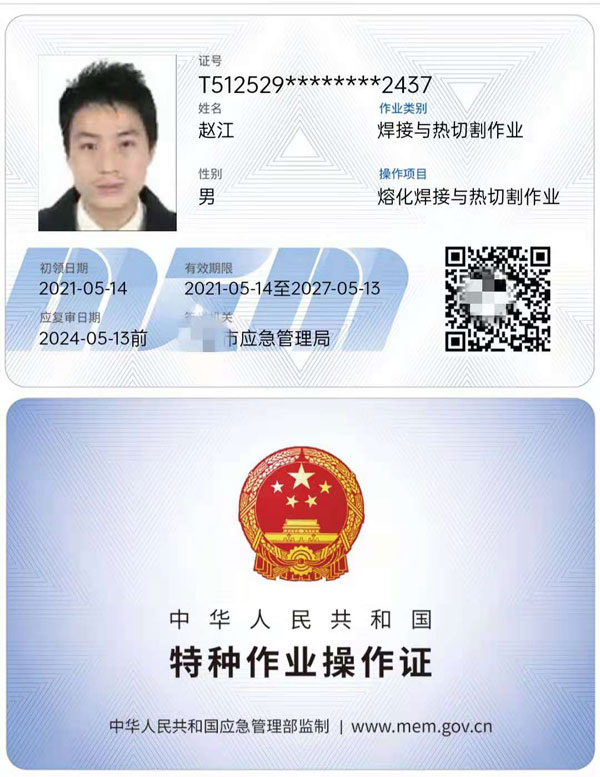 低壓電工操作證,高壓電工操作證,熔化焊接與熱切割作業,焊工操作證,電力電纜,繼電保護,電氣試驗,防爆電器作業,高處安裝維護拆除作業,登高架設作業,制冷與空凋設備運行操作作業,制冷與空凋設備安裝修理作業,施工吊裝作業,施工挖裝作業,危化品負責人/管理人員,危化品從業人員上崗證,新訓,三年復審一次;